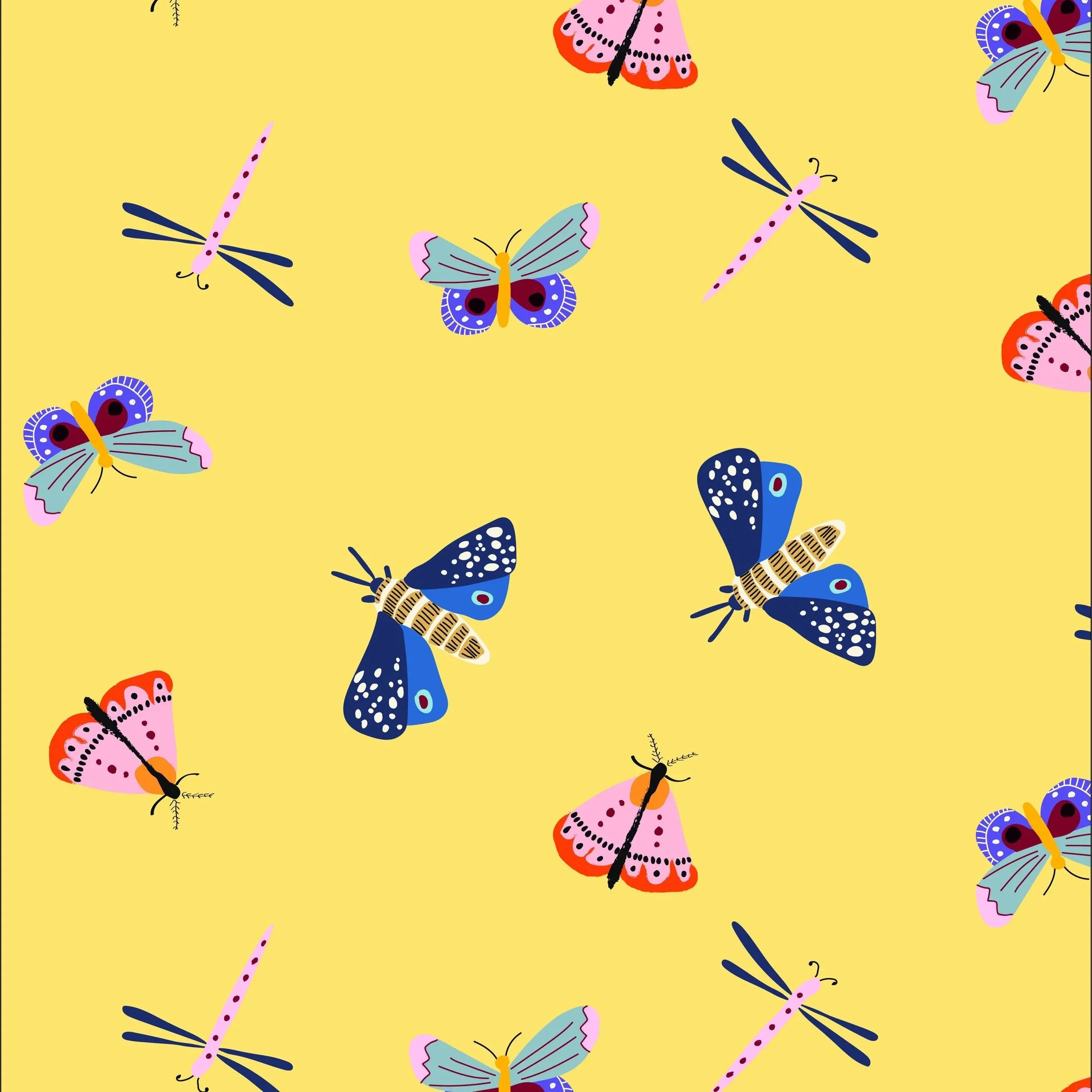 The range of work reflects both creative range and commercial discipline. Playful illustrated food prints sit alongside sophisticated celestial patterns. Hand-lettered type graphics are developed with the same care as detailed botanical repeats. Illustrated character artwork — bold, graphic dogs, whimsical sea creatures, imaginative florals — is designed to read clearly at small garment scale while holding visual richness up close.